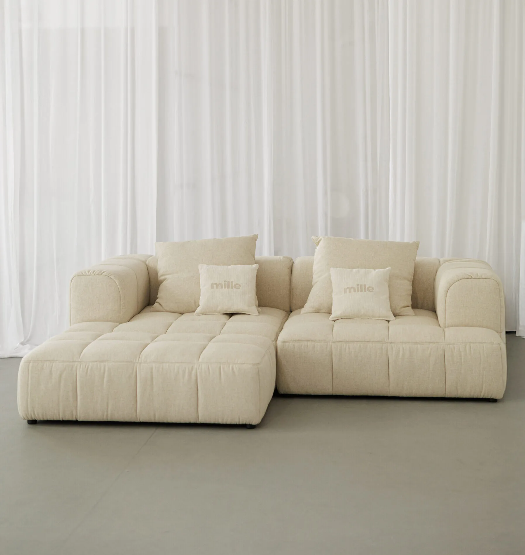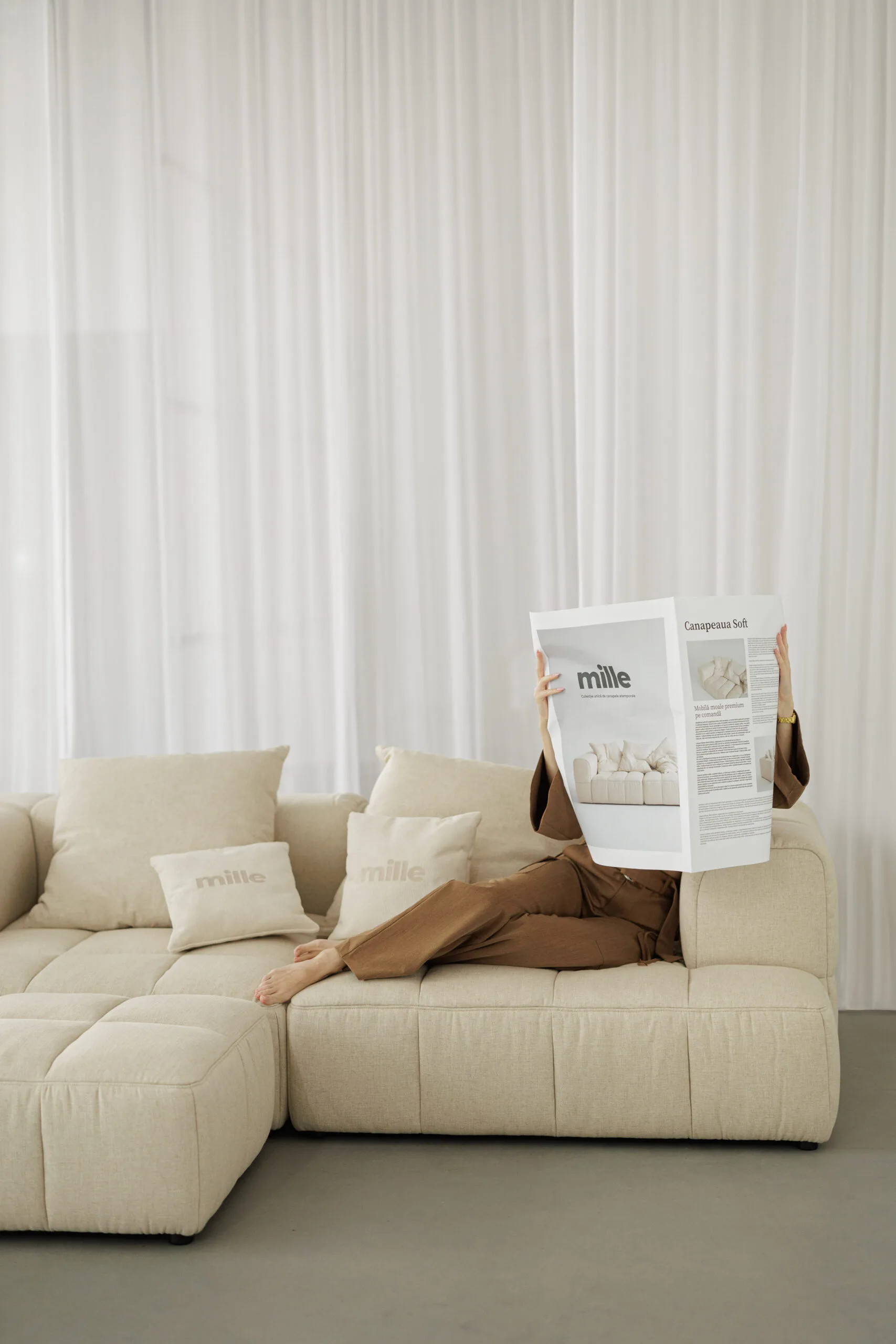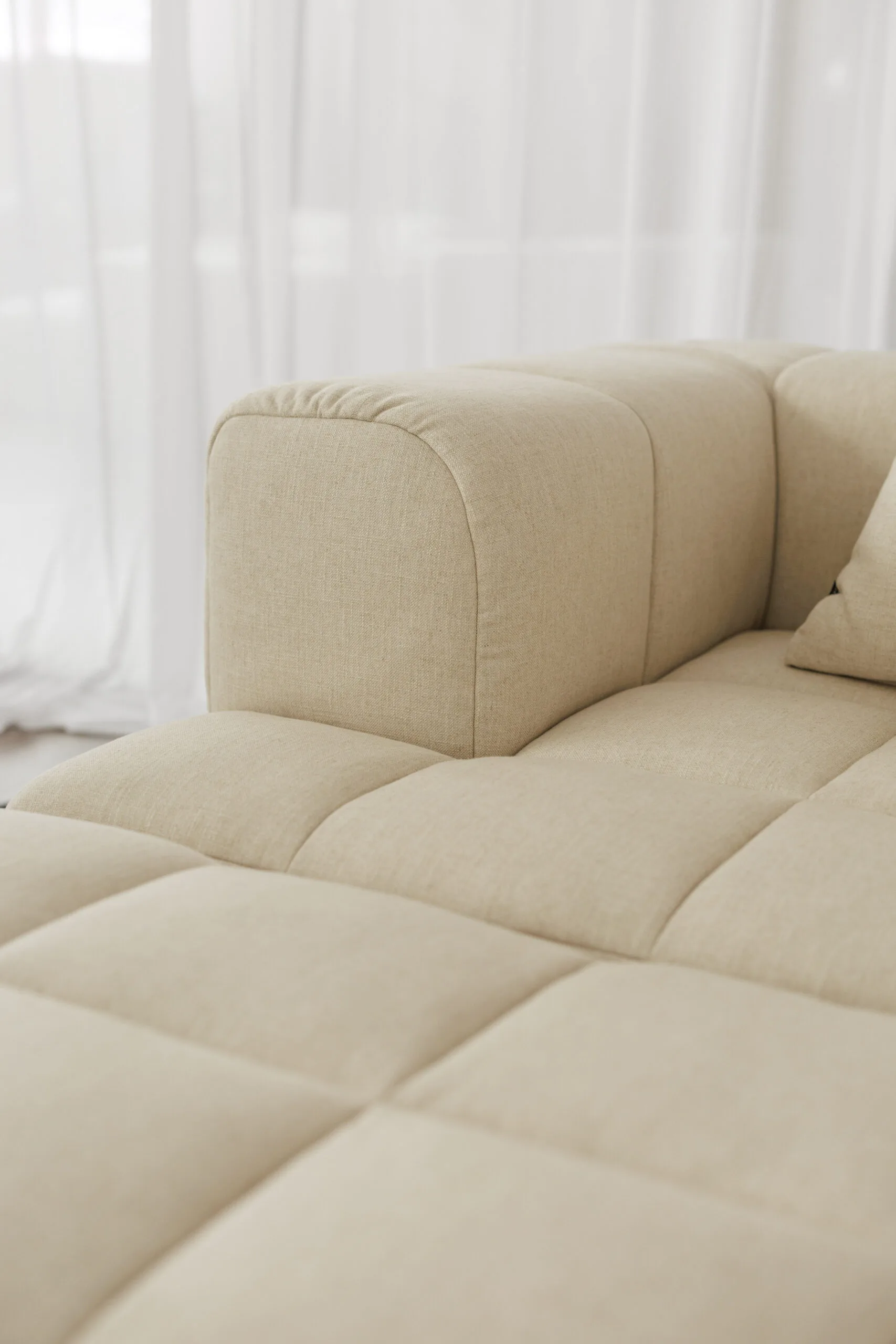 Această canapea modulară redefinește confortul cu designul său pufos și liniile sale curate. Tapițeria moale și pernele confortabile oferă un loc ideal pentru relaxare. Stilul său versatil și culoarea neutră o fac perfectă pentru orice living modern.