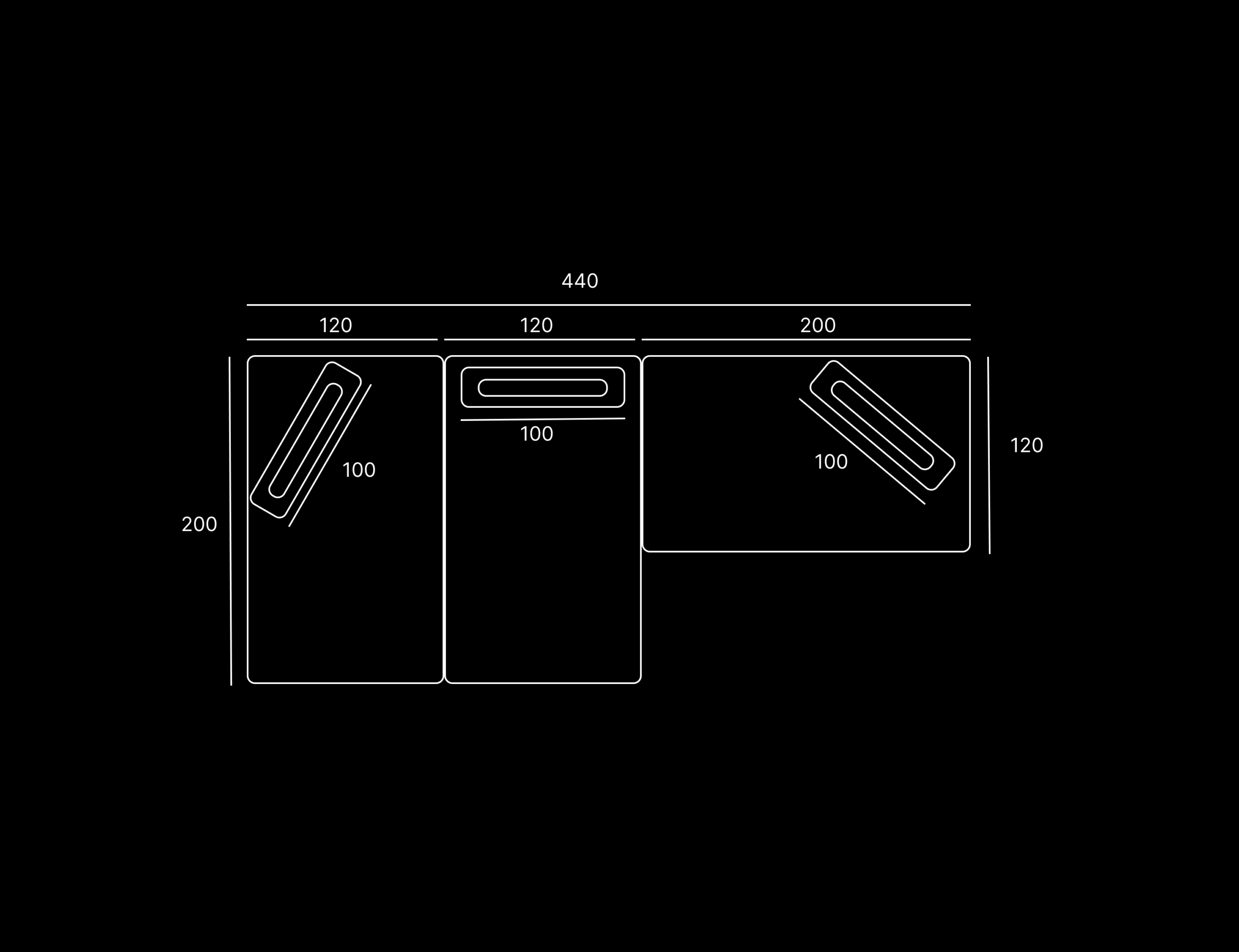 Dimensiuni: 440 x 200 x 120 cm (Dimensiunile pot fi modificate la comandă).
