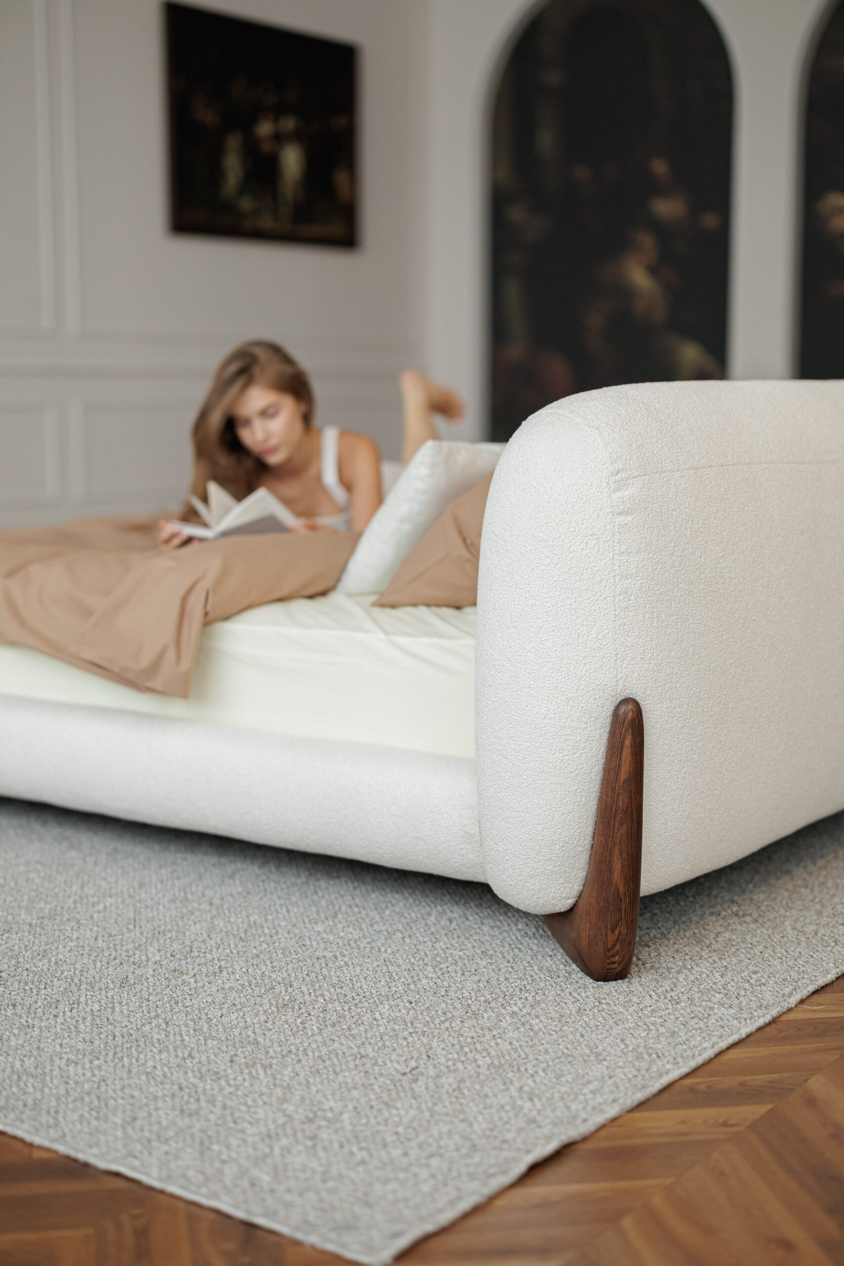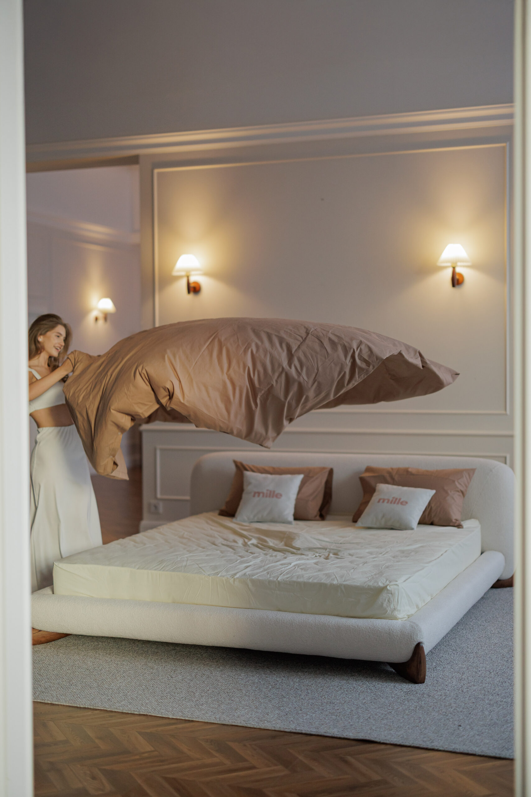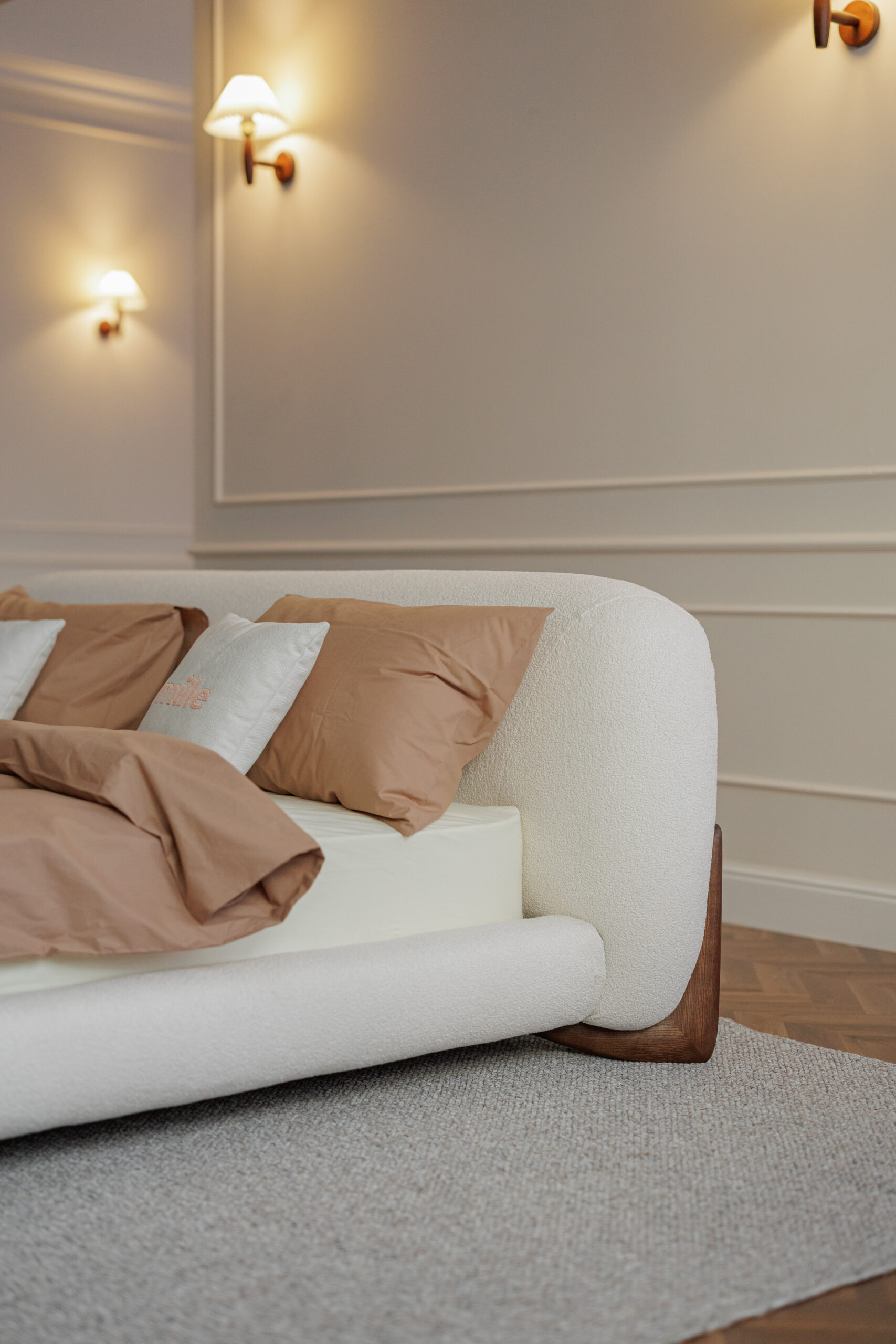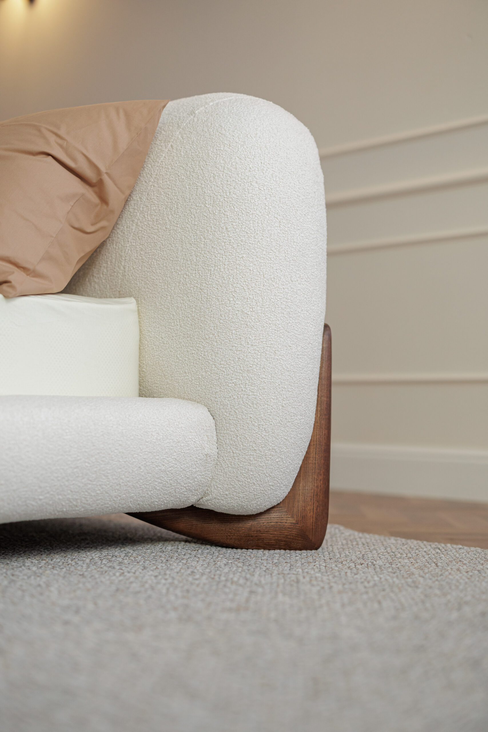 Tapițăria: Manza 01, țesătură texturată, reciclabilă 100%, are opțiunea de uscare rapidă.