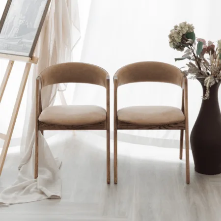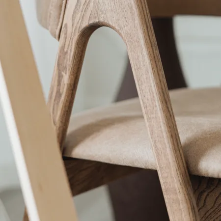 Scaunul “Tino” impresionează nu doar prin concept, ci și prin calitatea construcției. Carcasa este realizată din placaj combinat cu lemn masiv, pentru o structură durabilă și solidă. Pe șezut se aplică un strat de spumă HRR (high-resilience), urmat de un strat de sintepon care conferă volum și confort, după care se aplică husa prin tapițare.